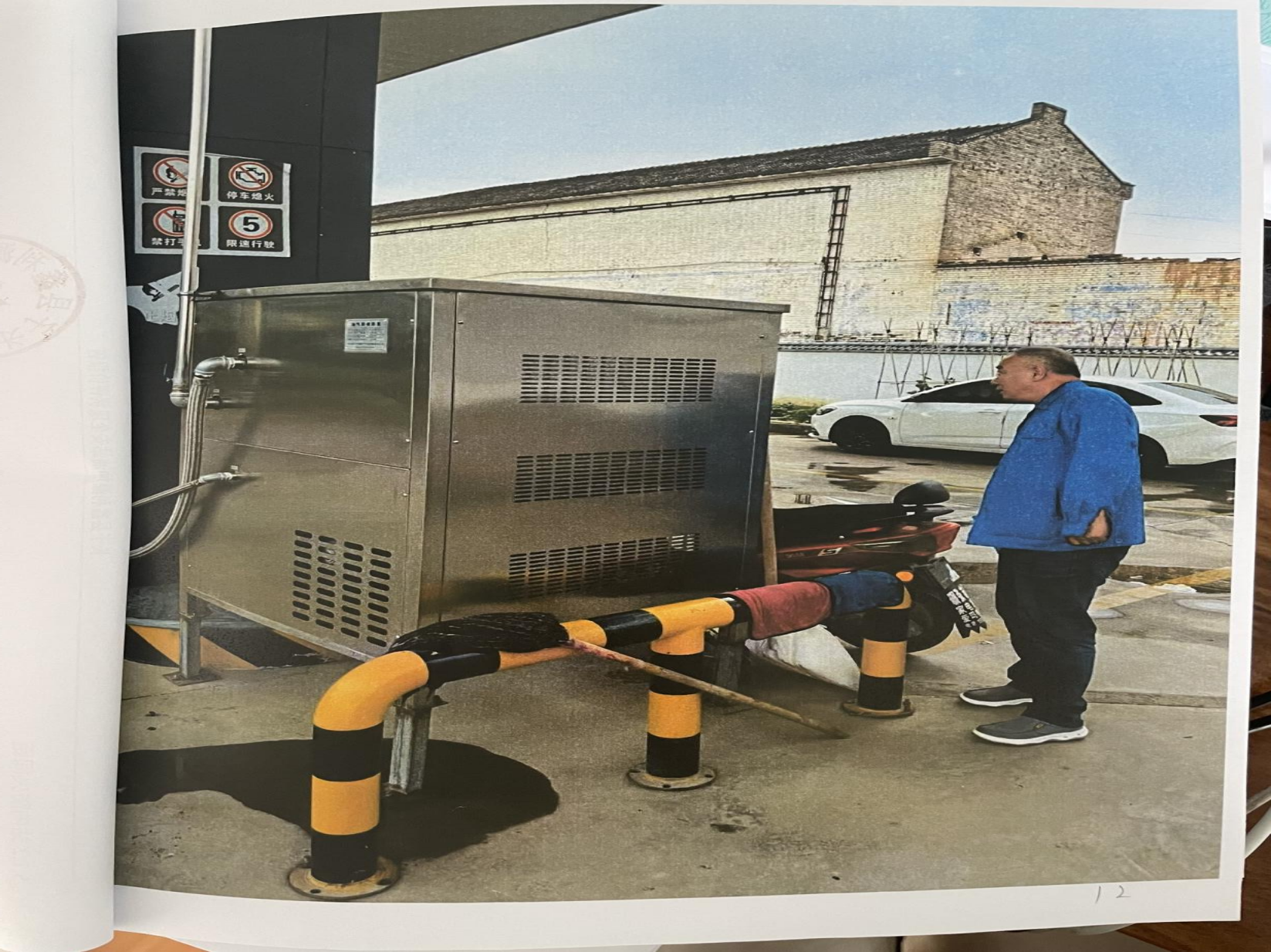 1.三次油氣回收通氣管管口設(shè)在罩棚下。 2.動力配電柜內(nèi)未安裝過電壓(電涌)保護(hù)器。 3.信息系統(tǒng)未設(shè)UPS不間斷電源。 4.消防器材箱破損。 5.油罐操作井內(nèi)量油孔未上鎖。 |